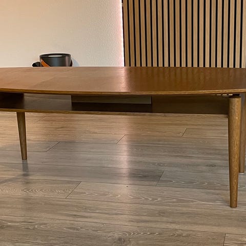 Sofabord med opbevaring, fin og praktisk til sommerhus eller studiebolig.