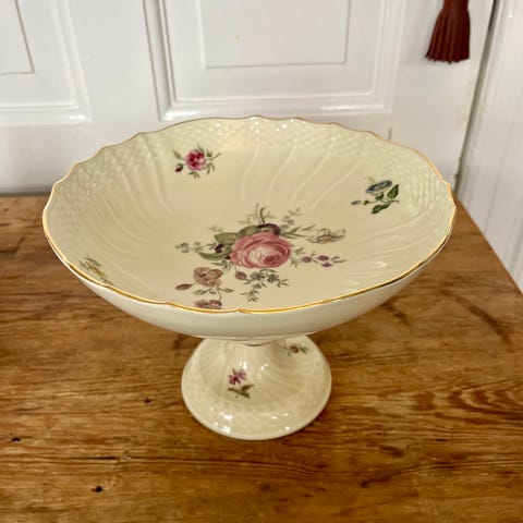 Smuk og i helt perfekt stand. Forskellige dele af Royal Copenhagen Frijsenborg stellet: kageskål på høj fod / opsats, lille fad / bakke, flødekande og sukkerskål. Se selvstændige annoncer for priser og mål. Sender gerne. Du kan også hente i Fredensborg eller København.