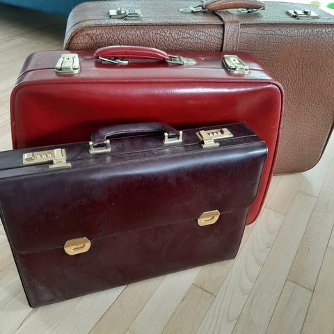 3 ældre kufferter. Ældre - men fungerer. De er ikke støvet af.