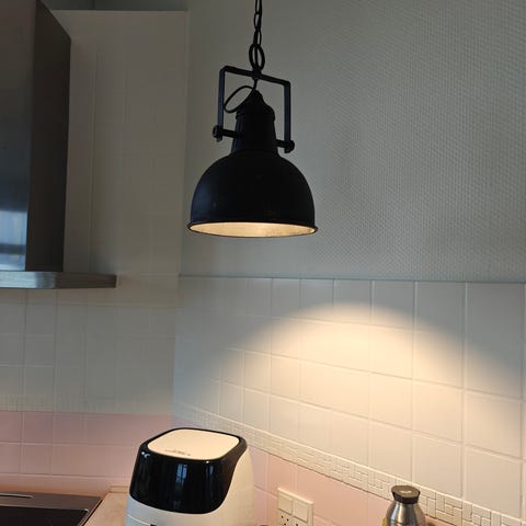 Flot og karakterfuld industriel pendellampe i aluminium med klassisk kuppelformet skærm. Lampen har et autentisk factory-look og giver et behageligt nedadrettet lys – perfekt over spisebord, køkkenø, værksted eller i et moderne hjem med industriel stil.