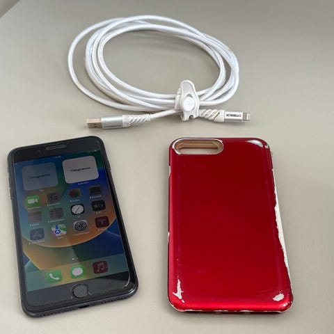Her sælger vi en Apple iPhone 8 + 64 GB i sort / midnight black. Fungerer som det skal. Etui og opladningskabel medfølger.