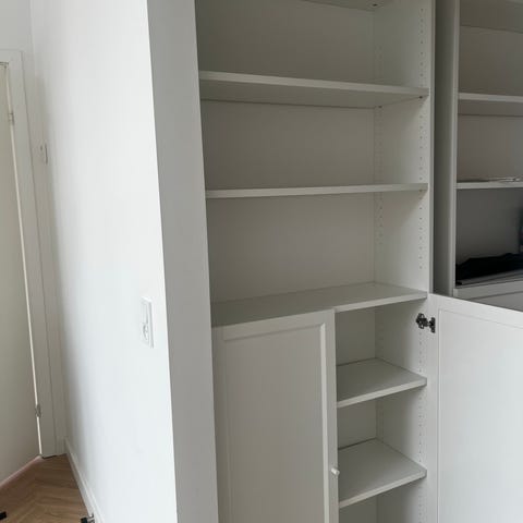 I toppen er de skruet fast til væggen så de står fuldstændig urokkeligt. Virkelig gode, holdbare og solide reoler til en rigtig "billy" pris (ha-ha..)!