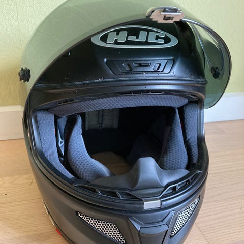 Hjelmen er kun brugt sparsomt da den ikke rigtigt passer mig i størrelsen og derfor brugte jeg den gamle hjelm i stedet. Nypris med kommunikationsenhed ca. 5000kr.