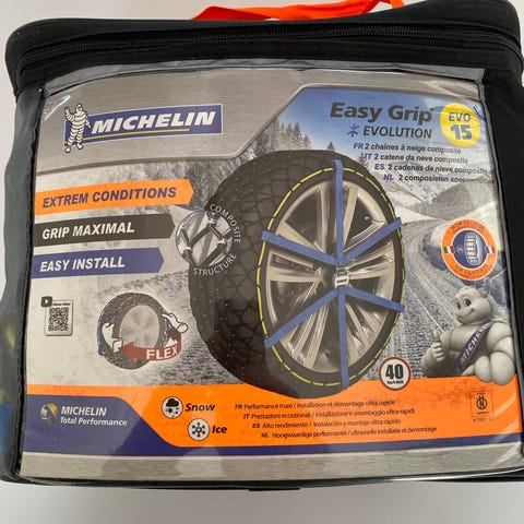 Michelin Easy Grip S11 snekæder/snesko til personbilsdæk i 16 og 17 tommer (se foto). Passer blandt andet til dækstørrelserne 205/65-16, 215/60-16, 225/50-17 og 225/55-16. Leveres i opbevaringstaske med net og lynlås. Brugt 1 gang.