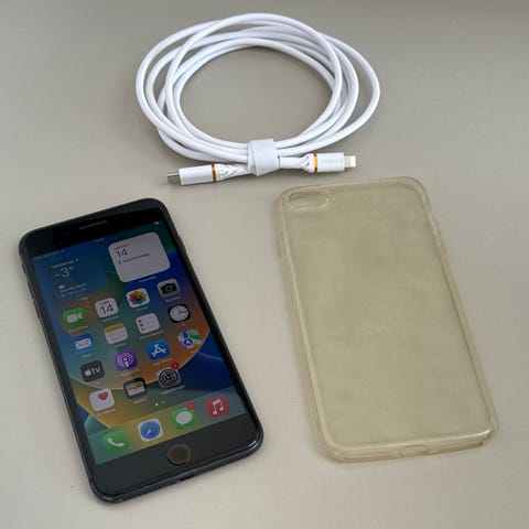 Her sælger vi en Apple iPhone 8 + 64 GB i sort / midnight black. Fungerer som det skal. Etui og opladningskabel medfølger.