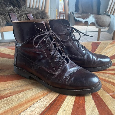 A.S.98 støvler i størrelse 40, blå farve. Støvlerne har en lynlåsdetalje og spænde, samt en robust sål med mærkning. Materialet fremstår som læder