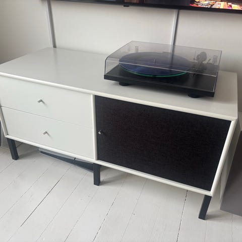 Stilren og funktionel hi-fi / TV reol, der skjuler alt det ingen gider se på.