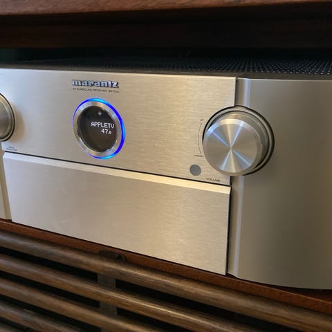 Slankt design der passer i lave møbler, men stadig en kraftig hjemmebiograf-receiver.