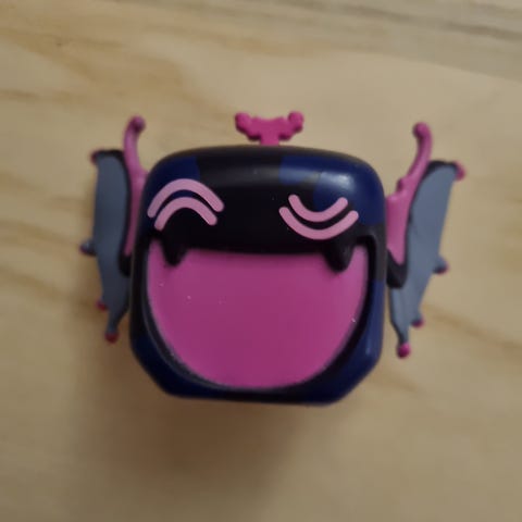9 stk Blox fruits små samlefigurer i plast. Sættet består af flere kubeformede figurer i forskellige farver og mønstre, herunder motiver som kranier, hjerter og vinger. Egnet som legetøj eller samlerobjekter til børn, der kan lege med figurerne enkeltvis eller som del af en større samling fra samme serie.