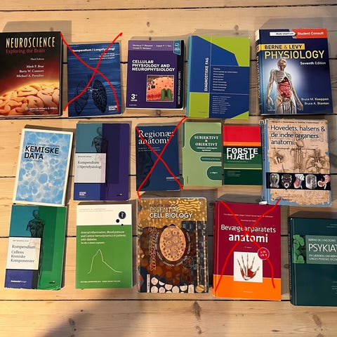 Blandede bøger og kompendier til bachelor medicin. Generelt i god stand