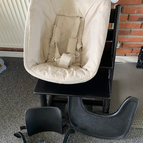 Ny Model Hvid Højestol Trip Trap med indsat Bord &NewBorn. medfølger som vist på Billederne.