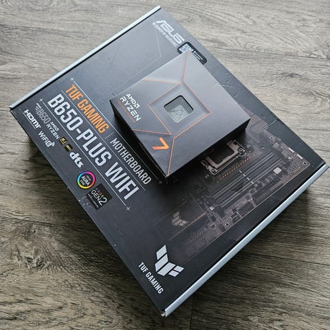 MSI B450 Tomahawk bundkort med Ryzen 5 5600 processor og 2x8GB Corsair Vengeance DDR4 3000MHz CL15 RAM.