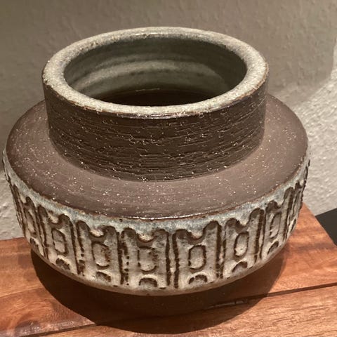 Smuk vase i stentøj med reliefmønster med fugle og blomster. Stemplet, nr 6425.