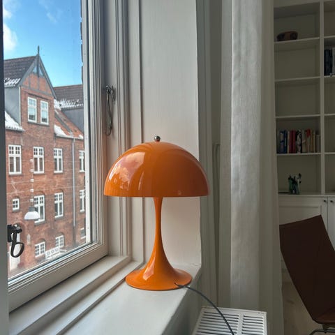 Louis Poulsen Panthella bordlampe designet af Verner Panton. Lampen er en ældre model, hvorfor der også er nogle små ridser rundt omkring på skærmen - de er dog kun synlige når du går tæt på lampen. Tænd/sluk-knappen virker, men skal nogle gange have et ekstra tryk. Prisen er også sat efter de små skavanker :)