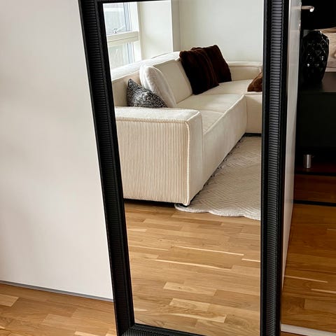 Ilva spejl i rektangulær form med bred, facetslebet ramme i spejlglas. Spejlet kan anvendes i entré, stue eller soveværelse og egner sig både til ophængning på væg og til at stå på et møbel, afhængigt af montering. Designet giver et enkelt og lysreflekterende udtryk, der passer ind i mange indretningsstile.