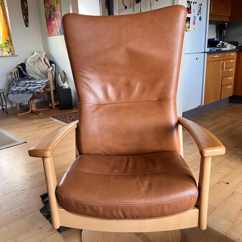 Lækker stol, hvor ryglæn kan lænes tilbage.