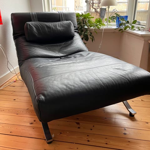 Eilersen Control chaiselong i sort læder og i rigtig pæn stand.