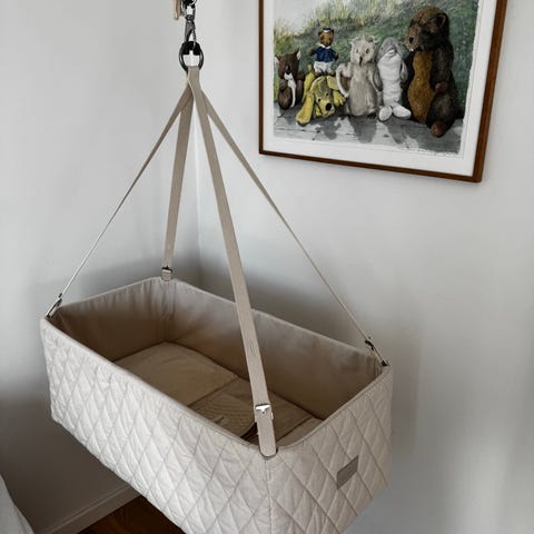 Vuggen er velholdt, har ingen mangler, og er klar til at vugge en ny baby.