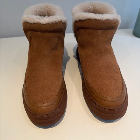 Lækre og meget varme korte støvler. Ægte lammeskind. Er brugt få gange og har ikke rigtig nogen brugsspor.