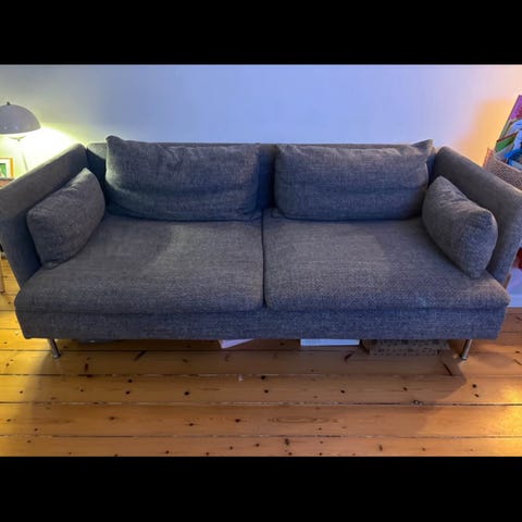 Stribet Stocksund sofa fra Ikea.