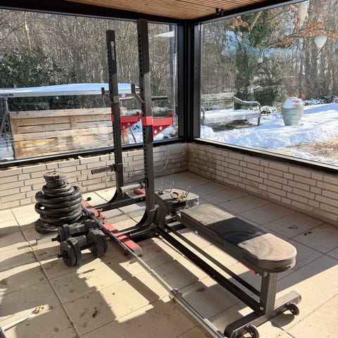 Multigym træningsstation med vægtstak og vægtstang