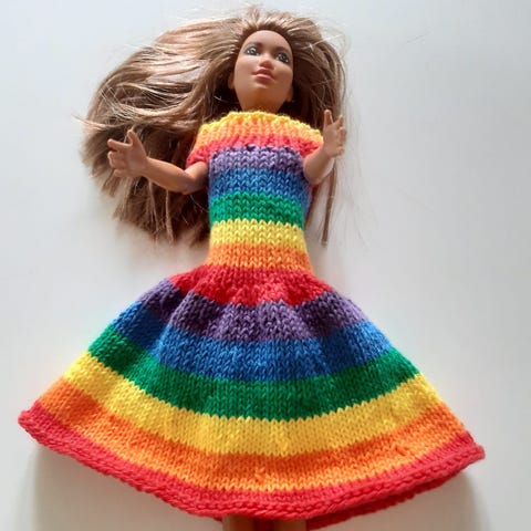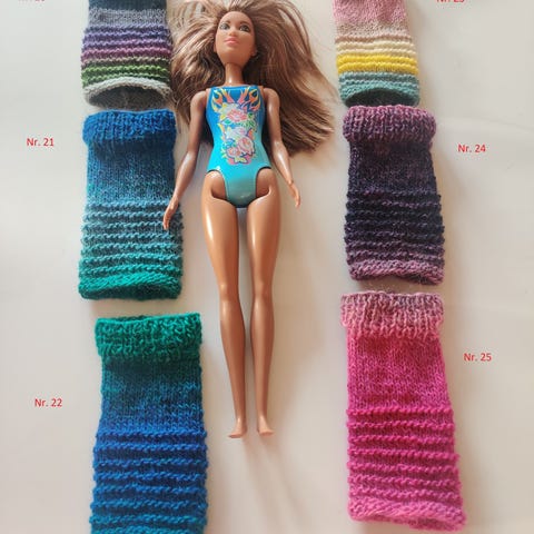 Ubrugte hjemmestrikkede Barbie kjoler. Flere farver