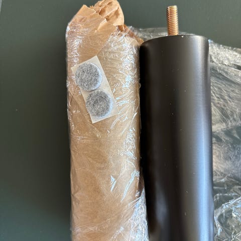 Der følger 2 L beslag med, og 2 mellemskiver til de to andre ben. Monteres ved brug af ben der er skruet fast.