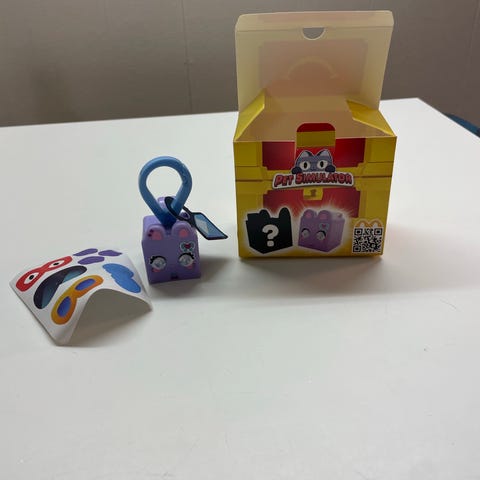 2 stk Pets simulator og 4 æg legetøjssæt med flere figurer og æg. Sættet indeholder tre plastikæg i forskellige farver samt to små dyrefigurer med kubisk form. Æggene står på små baser med trykte symboler, og figurerne har påtrykte ansigter. Egnet som samlelegetøj eller rolleleg for børn, der kan lide små dyrefigurer og overraskelsesæg.