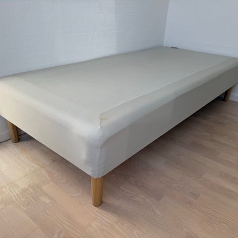 Boksmadras inkl ben i træ. Topmadrass indgår også. Næsten som ny. Tüssay. Også fra IKEA.