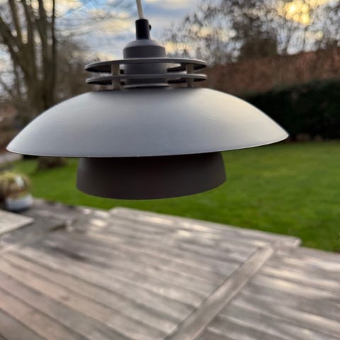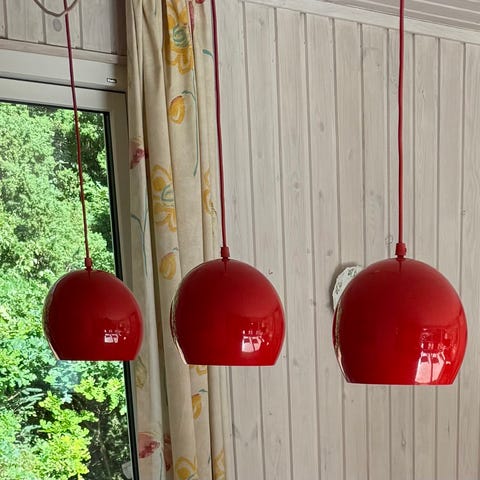 1970’er rød loftpendel Ø36 – skandinavisk hybrid genbrugslampe