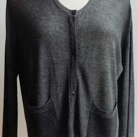 Cardiganen fremstår i rigtig flot stand uden huller eller pletter. En elegant basisstyle, der kan bruges både til hverdag og mere formelle anledninger – perfekt over kjole, skjorte eller T-shirt.