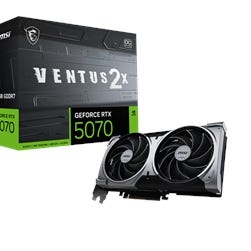 GeForce RTX 5070 Ti grafikkort. Dedikeret grafikkort til stationær pc med NVIDIA GeForce RTX 5070 Ti GPU. Kortet er beregnet til PCIe-tilslutning og har flere blæsere til køling, som vist på emballagen. Velegnet til krævende grafikopgaver som spil, 3D-gengivelse og andre GPU-tunge applikationer, afhængigt af den øvrige hardware i systemet. Yderligere tekniske specifikationer som hukommelsesstørrelse, clockhastighed og tilslutningstyper fremgår typisk af producentens dokumentation eller selve emballagen.