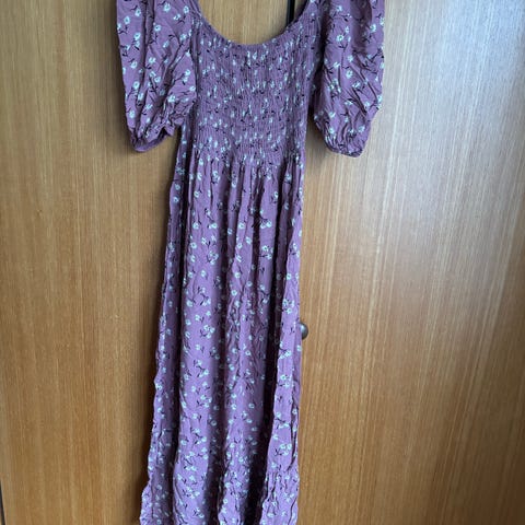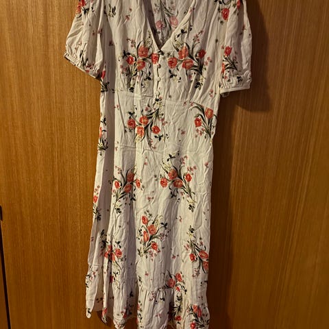 & Other Stories sommerkjole i str. 34. Kjolen er fremstillet i viskose og har et multifarvet mønster i lyse nuancer. Modellen har slå-om-effekt med bindebånd i taljen og lange ærmer.