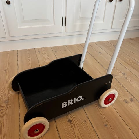 BRIO gåvogn i sort. Brugt meget lidt og kun indendørs. Fra hjem uden husdyr og røg.