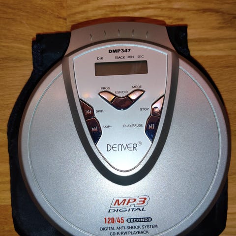 Denver bærbar CD-afspiller med indbygget radio. Enheden har CD-afspilning (CD/CD-R/CD-RW playback) og indbyggede stereohøjttalere på fronten. Der er teleskopantenne til radiomodtagelse og et lille display til visning af funktioner. Enheden kan bruges som transportabel lydafspiller i hjemmet eller på farten og kan typisk køre både på strøm via netledning og batterier (batterirum i bunden). Farven er primært sort med sølvfarvet top og frontpanel.