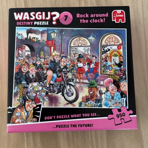 Jumbo Wasgij Destiny Puzzle 10 og Wasgij Weihnachts Puzzle 5 puslespil med hver 1000 brikker. Motiverne viser detaljerede, humoristiske hverdagsscener, hvor det færdige billede afviger fra motivet på æsken efter Wasgij-princippet. Egnede som underholdende puslespil for unge og voksne, der kan lide illustrative og detaljerige motiver med mange figurer og elementer at samle.