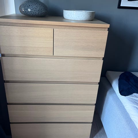 RESERVERET Malm kommode 5 skuffer - egetræ hvidbejset