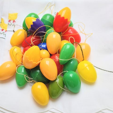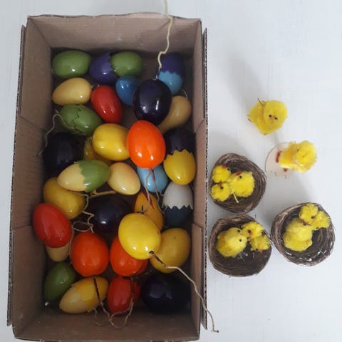 Retro påskepynt plastæg og kyllinger - forskellige priser