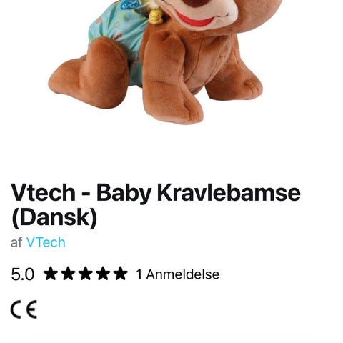 Sød bamse fra VTech der opfordrer og lærer barnet at kravle. Bamsen snakker og opmuntrer barnet til at kravle. Tryk på knapperne for at lære om tal og farver, eller hør en af de fem sange eller 10 glade melodier.