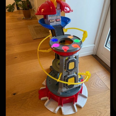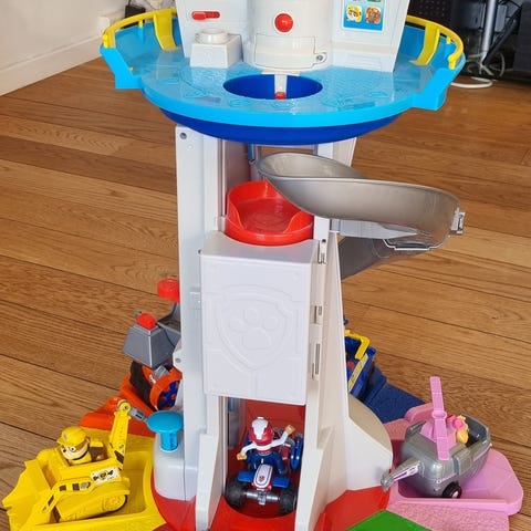 Stort Paw Patrol tårn/hovedkvarter. Tårnet har lagt mange timers leg bag sig, men bliver ikke brugt længere. Det er i fin stand.