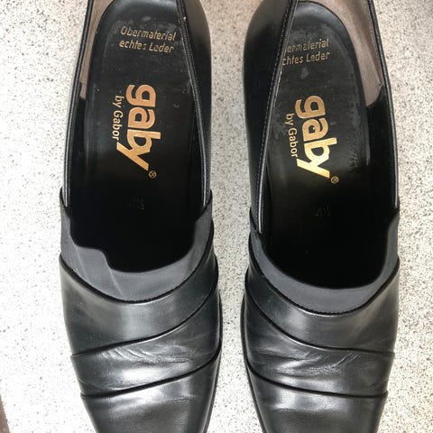 Højhælede ægte læder sko i sort til dame i størrelse 38. Skoene har lukket snude og hælkappe samt en remdetalje hen over vristen, der lukkes i siden med lille metaltrykknap. Mellem-høj blokhæl giver stabilitet. Overdel i glat materiale med indvendig foring og almindelig sål. Velegnet som pæne hverdagssko eller til mere formelle anledninger.
