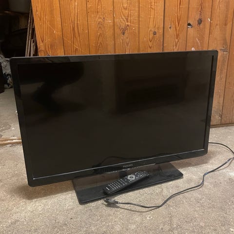 Ældre Philips fladskærms tv i sort. 42 tommer. Tv’et står på fod og har tilslutningsmuligheder i siden og bagpå, herunder flere HDMI-indgange samt analoge lyd- og videoindgange. Der medfølger Philips fjernbetjening som vist på billederne, vær obs knappen til justering af lyd fungerer ikke på fjernbetjeningen, man skal justere lyden på siden af fjernsynet, så får man lidt motion!Velegnet som almindeligt tv eller sekundær skærm i f.eks. soveværelse,børneværelse, eller sommerhus