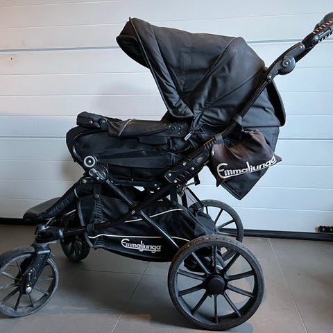 Emmaljunga klapvogn i sort. Vognen har justerbart ryglæn, fodstøtte og kaleche. Der er frontbøjle og sele til barnet. Håndtaget er ergonomisk udformet. Klapvognen har fire hjul og er egnet til kørsel på både faste og bløde underlag. Velegnet til daglig transport af et barn på gåture og ture i byen.