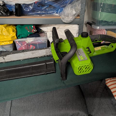 Remington elektrisk kædesav med dobbelt isolering. Sav med ledning og kædesværd, egnet til almindelige skære- og beskæringsopgaver i træ. Orange hus med integreret håndtag og eltilslutning via stikprop. Velegnet til brug i have eller værksted, hvor der er adgang til strøm.