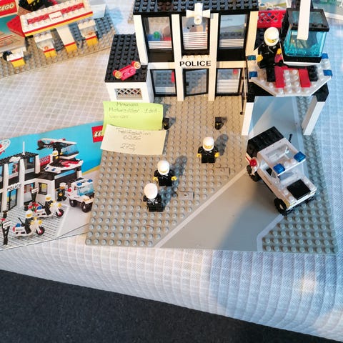 Lille politistation indeholder alle klodser m. politibil, motorcykel, 2 politimænd + 1 fange kr. 125,-