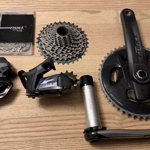 SRAM red DUB krankset med quarg wattmåler. 165mm pedalarme. Sælges som på billederne uden klinger.