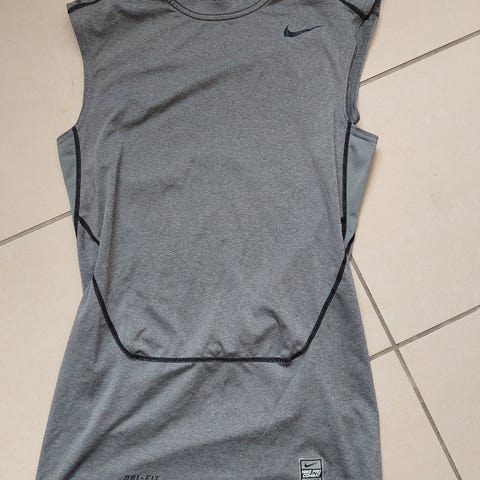 Toppen er primært grå med sorte paneler i siderne og på ryggen. Fremstillet i let, åndbart mesh-materiale med Dri-FIT teknologi, der er designet til at lede sved væk fra kroppen under træning.