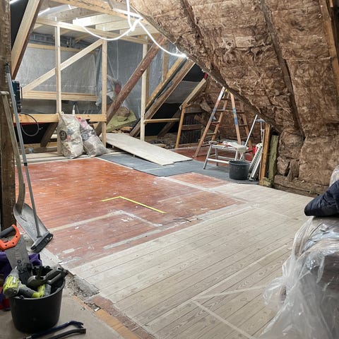 Gulvet er taget op med henblik på genbrug og egner sig perfekt til bolig, sommerhus, værksted eller gør-det-selv projekter.