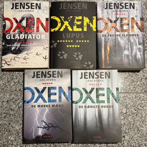 Alle Jens Henrik Jensens Oxen bøger sælges samlet. Afhentes på Nørrebro