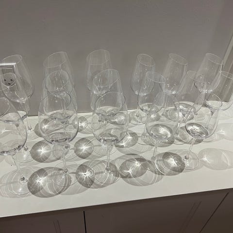 14 hvidvins- og 5 rødvinsglas.